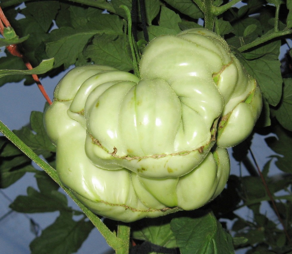 At 17 days after fruit set, this Michael's Portuguese Monster weighs an estimated 1.46 lbs. and continues to grow at an impressive rate. It is 3.5 times as large as my personal best was at 17 days along in 2012. That Big Zac grew to 3.486 lbs., but it grew in September, October and into November when the weather was cooler.