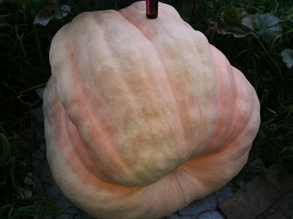 my 1546 hoping to get me a Howard Dill Award....doh! i am gonna post multiple pics to show of this weirdo.....no idea if she will go heavy or light. 70 days old and about 1060 lbs estimate. if you read my last years diary i said who knows what freaky shapes the combo of my 1546 pumpkin and 1381 progeny last year the 1085 shenoha might produce. lol.
