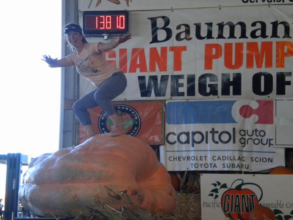 I am happy to report that the judges found my 1985 perfectly fine! Here I am celebrating the new 1381 Tobeck (1985 Miller x 1409 Miller). This was my most aggressive pumpkin, but the dumb grower (me) got a little too aggressive moving the main vine one day and SNAP! This pumpkin didn't get to reach its full potential, but it's helping me to get closer to my goal of 4000 pounds with 3 pumpkins and the coveted 4000-pound club jacket! I only need 1134.5 pounds of pumpkin....and I've got 3 that will easily handle that task! Next stop: Central Market Weigh-Off!