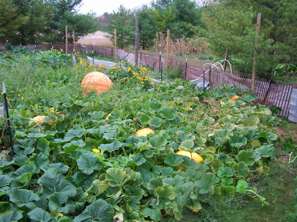 After football started, he let his patch go. There were 8 pumpkins (besides the big one) ranging from 350-200 lbs, all orange and nice and round. We took one to be carved at the visitor's center, one went on his sister's porch, one went in the neighbor's front yard, and the other 5 are in our fall display.