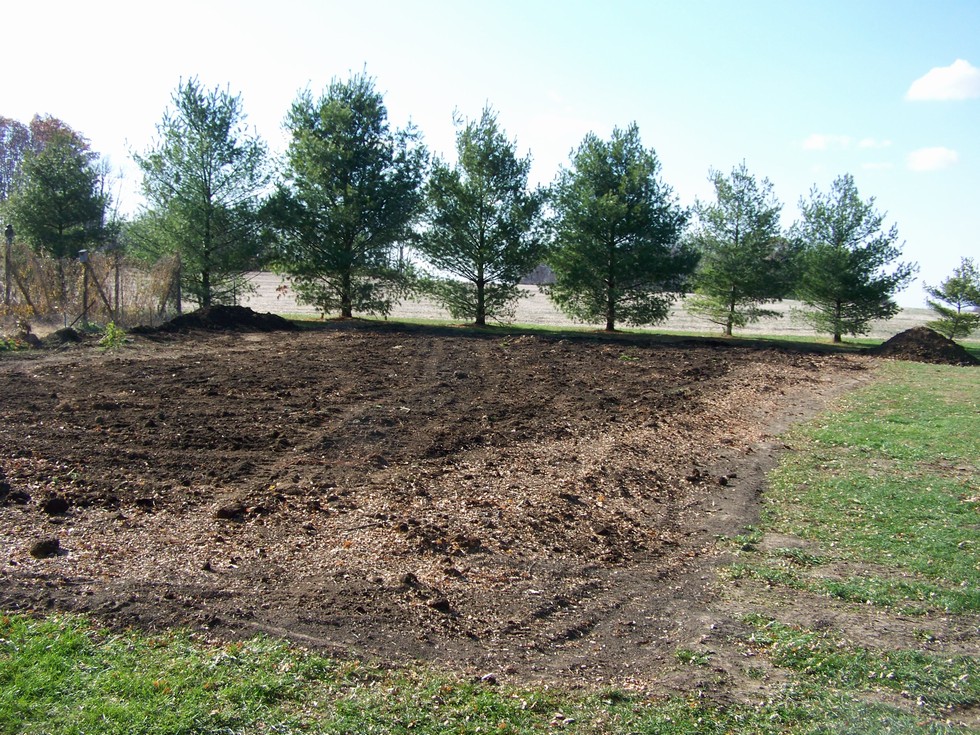 25 yards of compost was spread about 2 inches thick on top of the leaves.