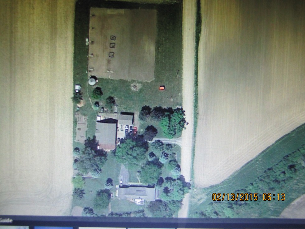 Here is the google earth view of my property. The patch is on top and you can see the five huts on the left. The three round dark spots were cantaloupe and watermelons. This view was taken in May sometime 2014. Pretty much same set up for 2015.