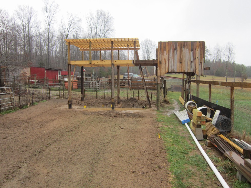 The MG Garden spot. I caught a day in mid January before winter arrived to be able to till under the patch for the second time. I had spent time in the previous weeks adding compost,calcium,and everything else while shoveling the soil around because it was either no topsoil or too much from it being a hog pen for many years previously. I graded the spot and above it and made two catch ponds to catch all the runoff that had been going into my AG patch.