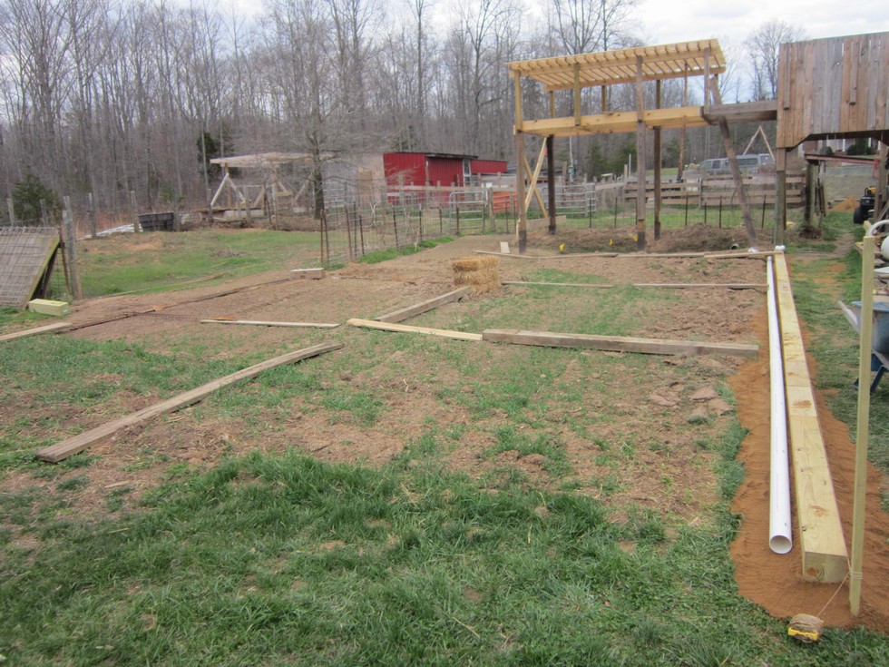MG patch is coming along. I'm still leveling it by hauling in some bottomland from the farm and adding the rest of my compost.I added a drain for Lake LG and drilled holes in the top of it for a french drain beside the walk.