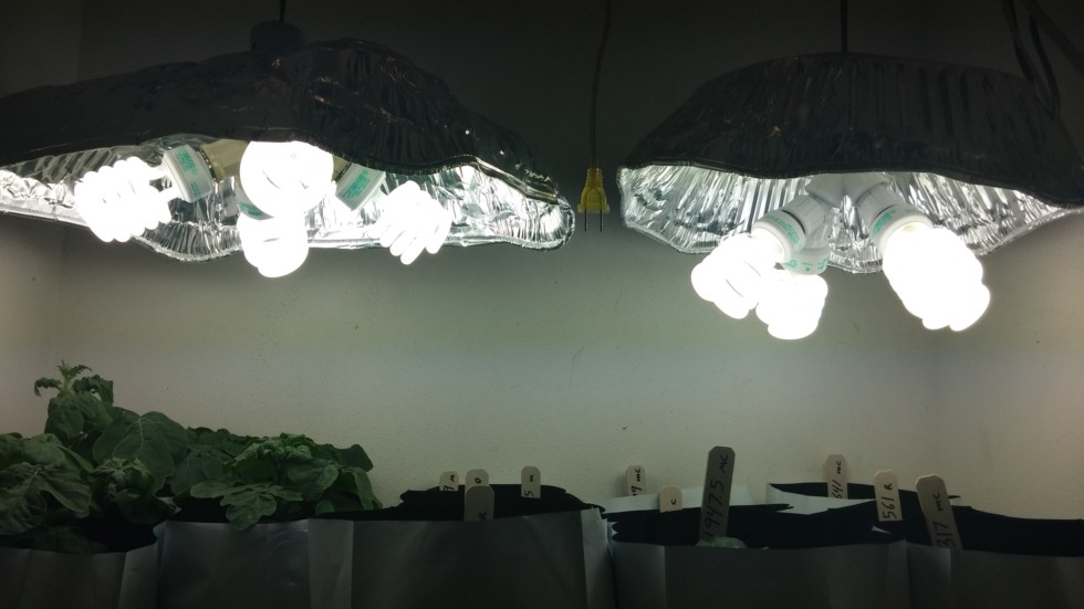Here's a better look at the poor mans lights. I think i could grow a 5lb tomato with these 8 bulbs in this closet , ! If you doubt me...i might try it...once i have the room. !! Lol. Massive roots,small plant !!!!!!