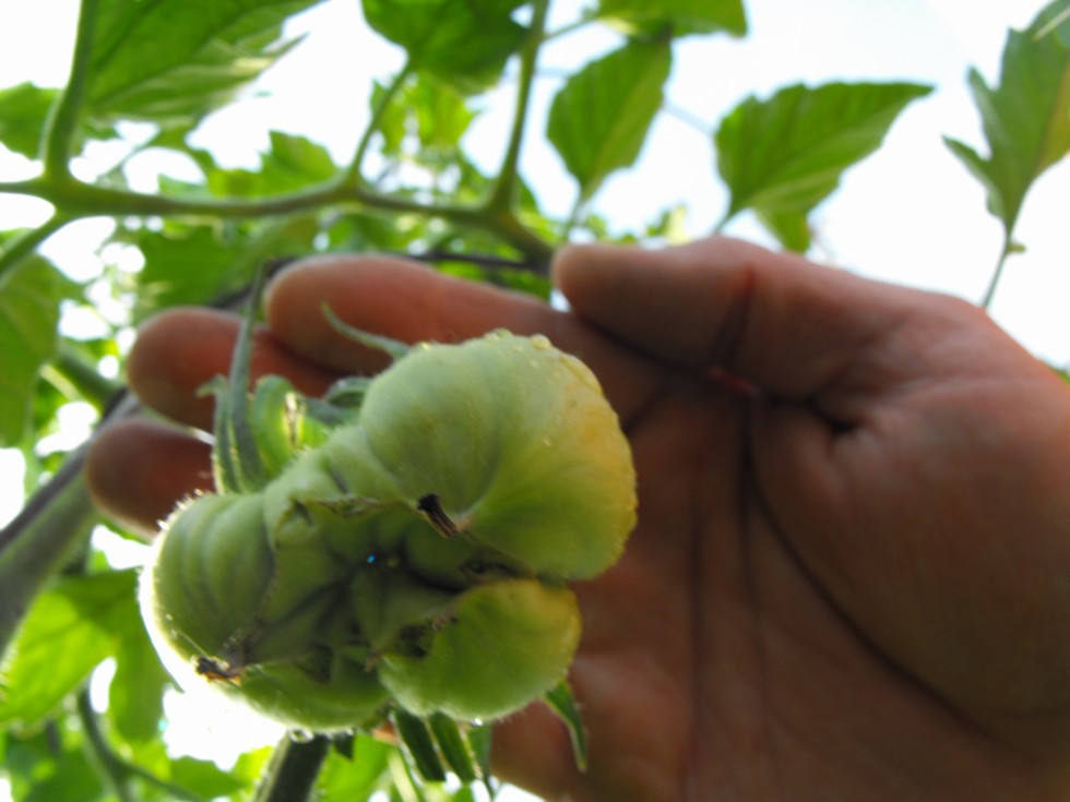 7.10 Foss (A) Plant Mater growing good this morning. Used hand to block sun so Tomato would be visable without glare. There is an open cavity in the center but all is fused together in a ring.