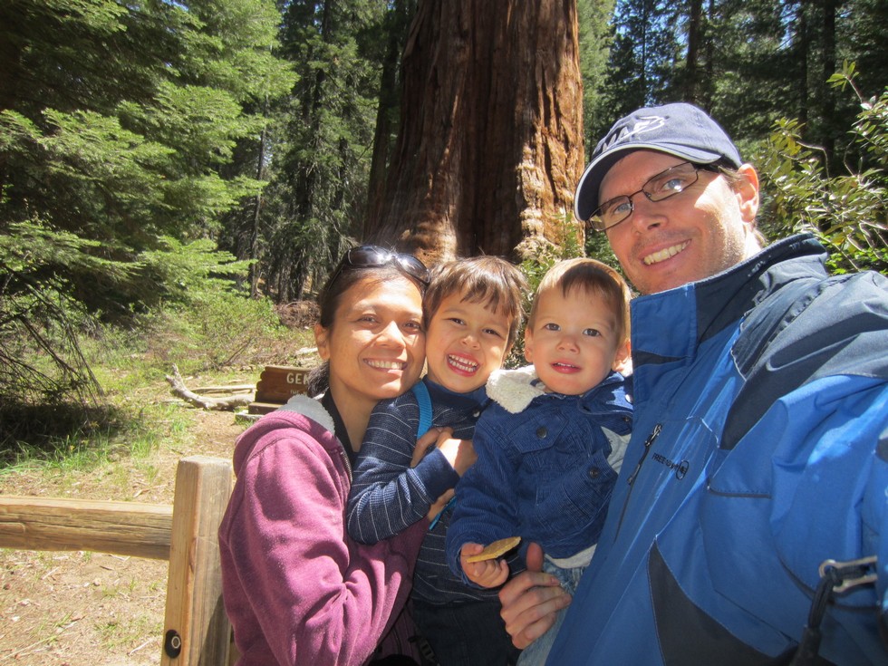our family is blessed and growing up, general grant tree in back ground for photo! Joshua's garden is flourishing, will post photos soon, my other camera has good pictures but they won't download yet.