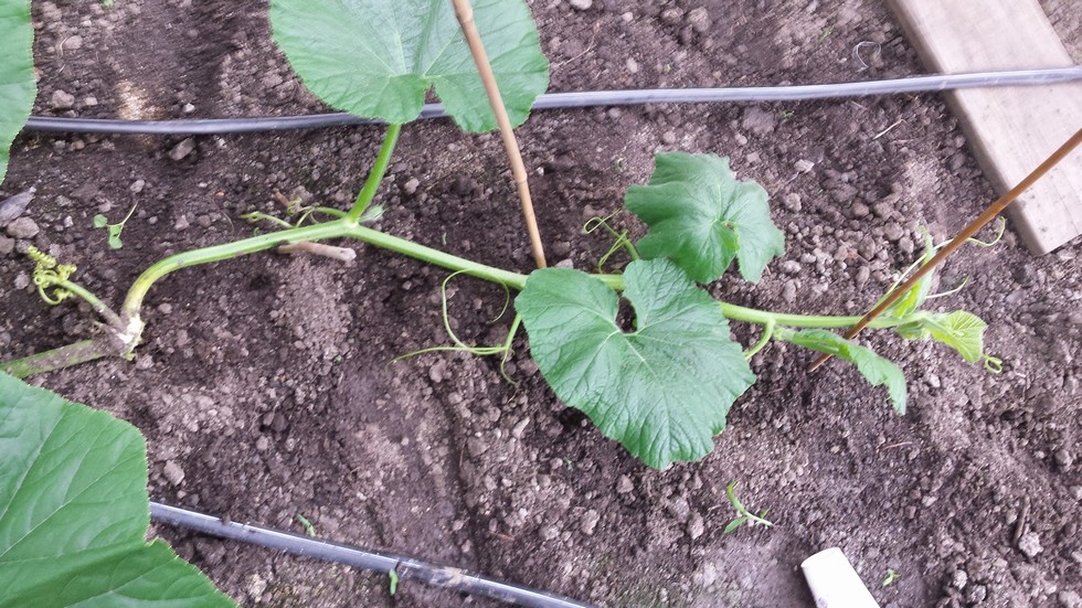 this is the retrained side, lost about 3 ft of main and a foot of 2 sides from it. plant will figure it out in about 3 or 4 days and this vine will start growing just like the main.