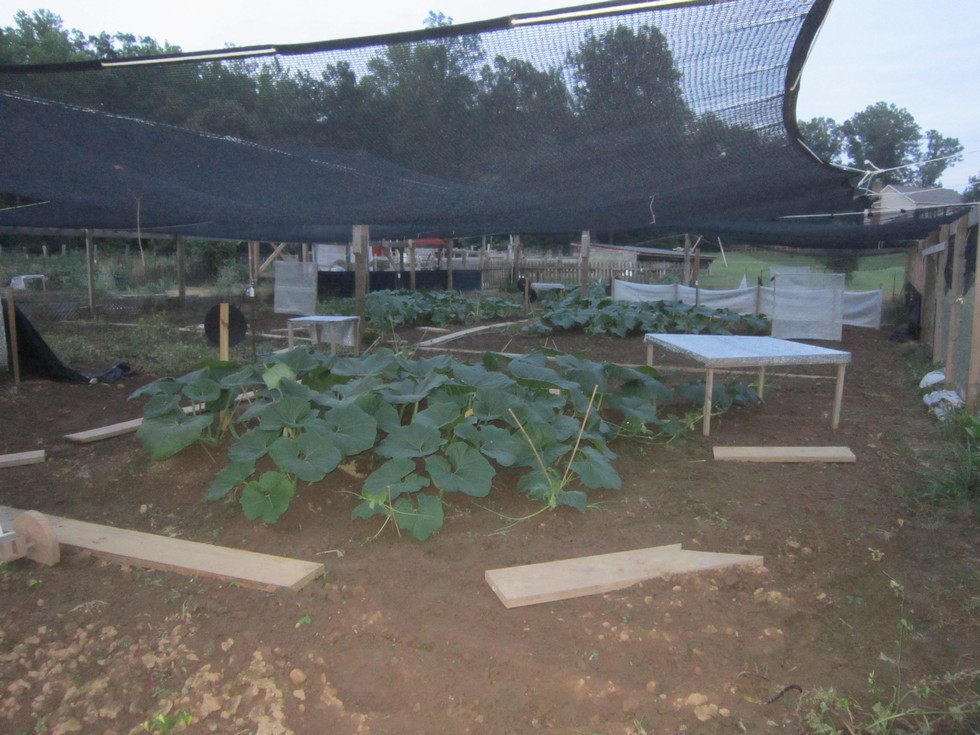 Patch View. It's been hot and humid here(mid 90's-low 70's at night) and we dodged the brunt of a big storm yesterday and got another .5" of rain. It is great growing weather and the plants love it. The ones I burried the night before look like I missed them. The 1969 grew 10"" in 13 hrs on a 1st side last night.