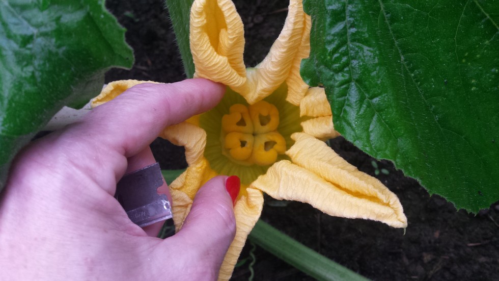 Pollinating everything in sight after the one we set up aborted. This on is on a side just past the abort. If it is the one that takes we will terminate the main at this side vine and turn this into the main.