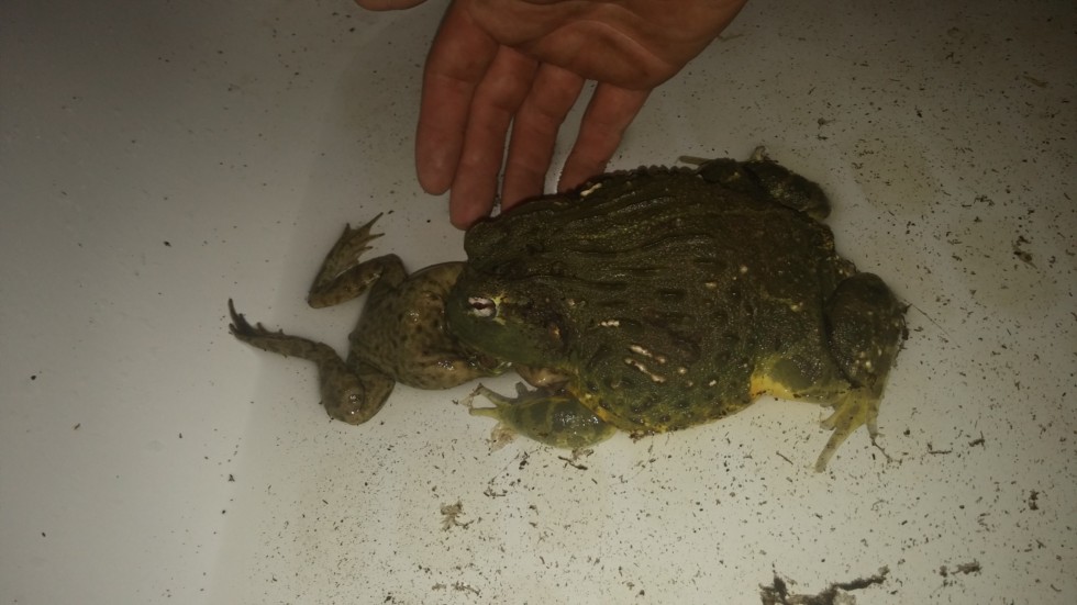 Bigger always wins !!! This is my African bullfrog . he can eat 3 mice in 5 minuts.lol And that was a year ago. Ill see soon if he will eat 5.