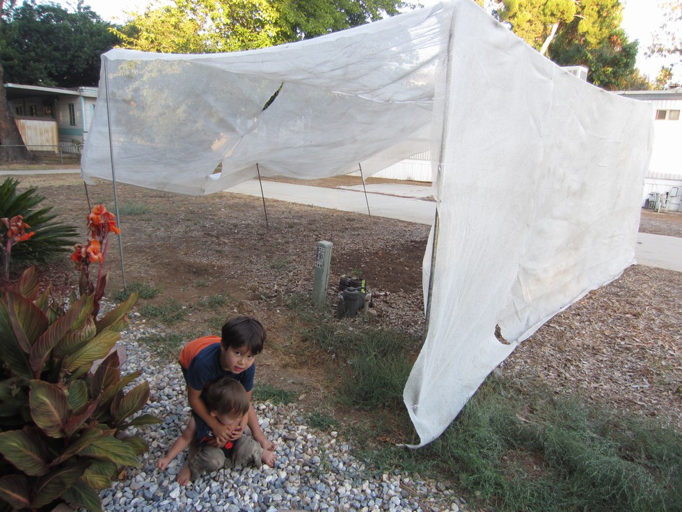 big brother strangling little brother infront of the tomato hut!