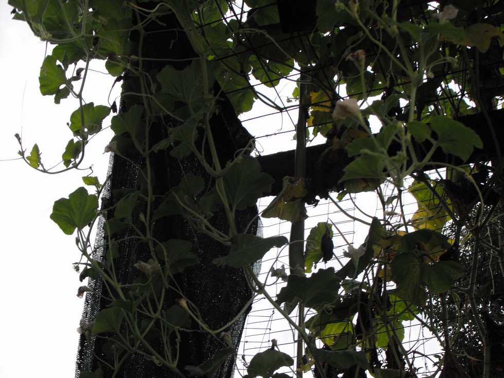 We used a 30' section x 36" and folded it by 3 to make it hang approx 10' down for shade on the 120 McWilliams LG. Storms and rain this morning making the pics dark. Looking close you can see the LG hanging in there.