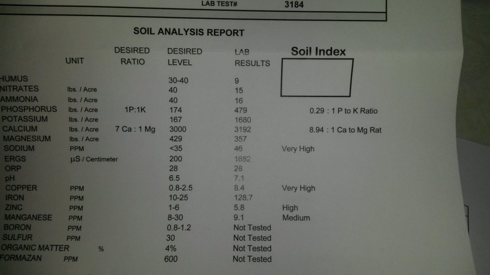 Soil test from day 35 on 1450 Steil. Easy to add some nitrate.