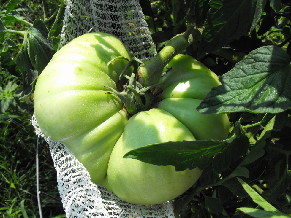 A nice tomato on the 7.10 Foss (C) Plant 14 dap. Both the 7.10 Foss A & B plants along with a 4.77 Hunt plant have been pull & burned because of disease. I also Harvest a ton of seeds of the 3.40 X 4.77 Hunt Tomato I grew off the 7.10 Foss (A)plant this morning and have got them on screen drying. Supposed to have heat index Temps again today in the 107-109 range. Humidity is at 100% here and you just pour with sweat when you walk outside, hits you in the face. Pig has all new water in his swimming pool and a large drinking container along with fans in his house. Hot, Hot, Hot!!