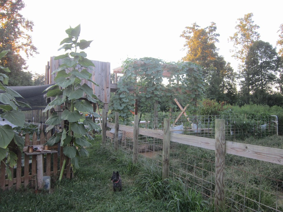 The Long Gourds are filling the trellis up. Thats one of my tallest sunflowers beside Lacey Jane