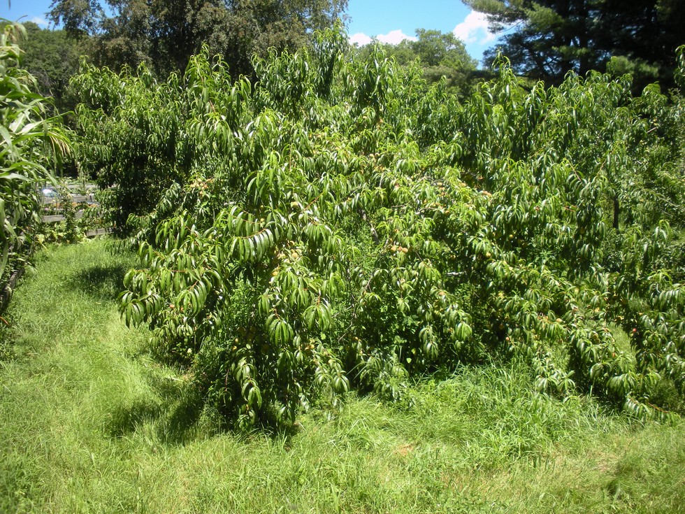 A Red Haven peach loaded up. It should have been thinned. Who has the time and patience. The little ones taste just as good anyhow.