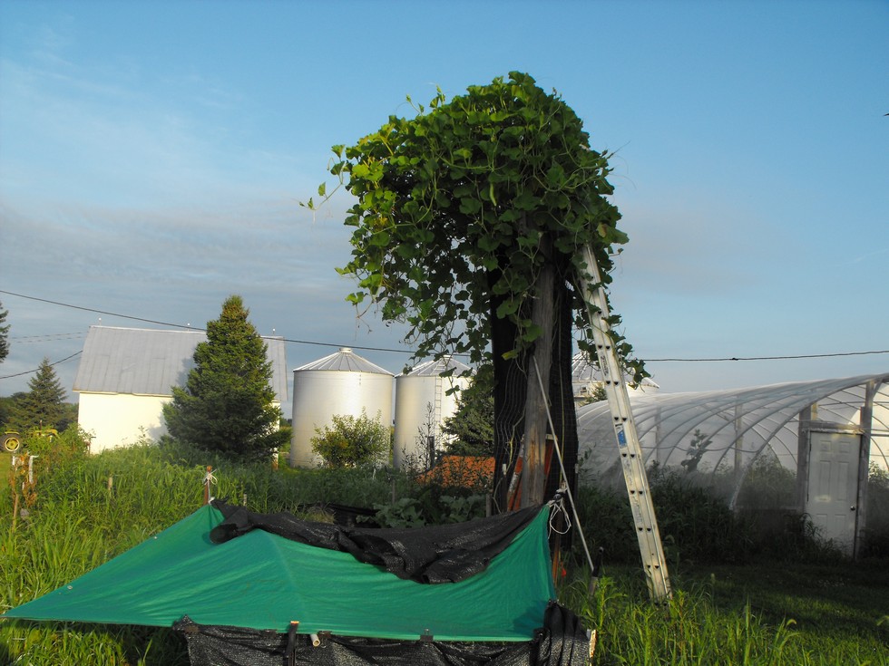 Look closely and you can see the next gourd on the 120 McWilliams Plant. I like it because it is growing on the East Side!! Shaded in the afternoon. There are two growing close together but its the outside one you see here in this pic that I think will be the Keeper.