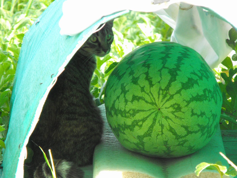 My daughters big grey Tiger Sarafina. She and her sister keep voles and mice out of the melon patches 100%...Got mice...get a couple cats..they work better together as a team..seriously, they do. She is guarding the 117.5. They both regularly patrol the melon huts and vines day and night.