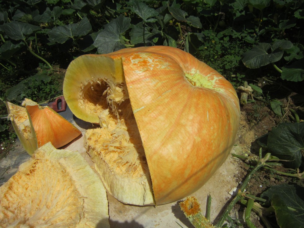 This shows the bowl. For you 1821 growers out there this was a sound fruit. blossom was 3" thick, stem side 7", and a very even 5-6" everywhere else.