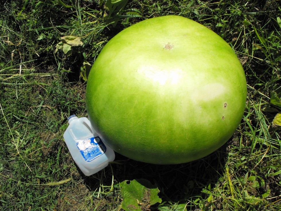 130 Carey bushel gourd uow 190 ott, est 193 lbs and growing. Cleaned up gourd plant/weeds and leaves are in full sun now!! Trunk is huge and well.....Solid no soft spots anywhere.