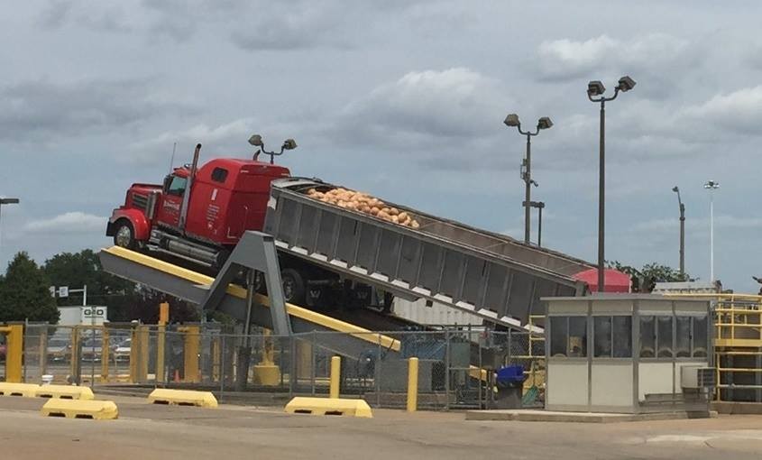 More than one way to unload pumpkins. It is Processing time at Libby's in Morton, Illinois. I wouldn't recommend this for our hobby although it would be entertaining.Hmmm, wonder what the cylinder size is on that lift...Geeeeeezzz