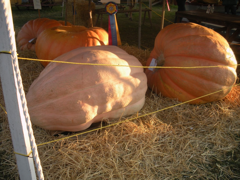 My pumpkin took first place with a weight of 792 pounds, the pumpkin on the right took 2nd with a weight of 768. His was bigger, mine just happened to be a rock!