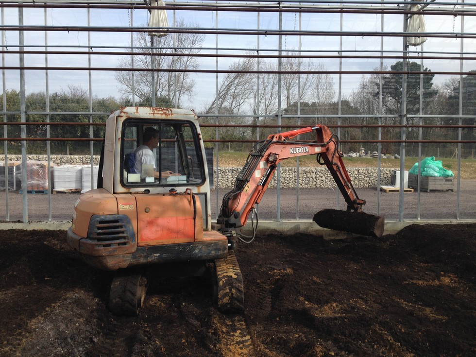 We are double digging the whole patch every year from now on as our rotavator only goes half the depth we would like. I'm seeing a lot of pits dug for starting plants in the hoop house. I'm personally not a big fan off digging a pit for two reasons. First, if you have a clay base you can end up with the perfect mini pond. And secondly, if we think that a small plant needs that extra root space why don't we treat the whole patch the same way.