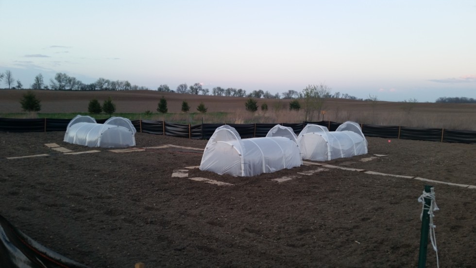 Other 2 hoops up and plugged in, 2 seeds popped roots, waiting on other two