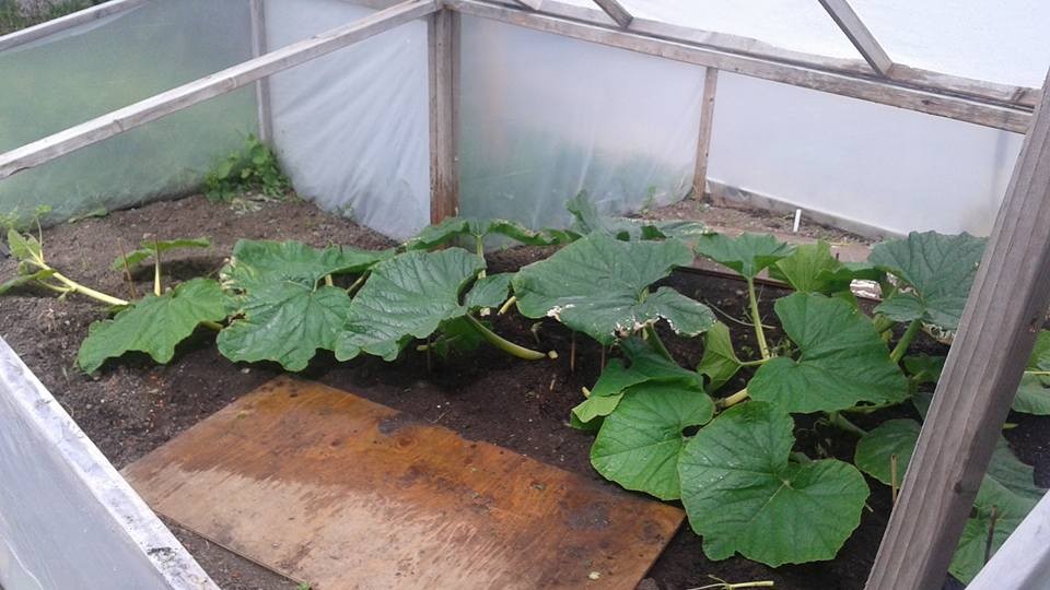 The vine on the 2109 Zywiec is at 8'-6" long. It looks like there is a female blossom in the tip cluster. That means it will be a couple more weeks until pollination time. I started burying the first of the side vines today.