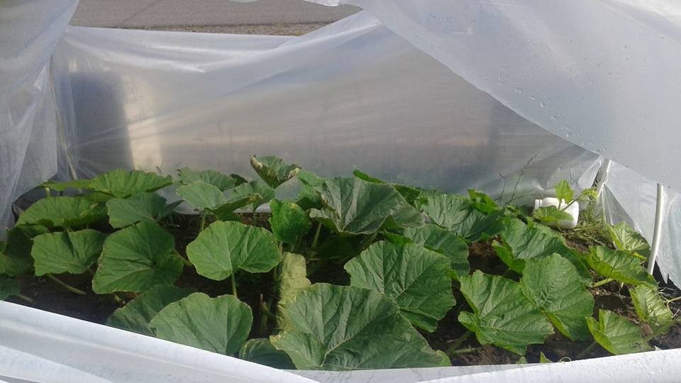 he 1223 Radach has mostly filled up its hoop house but still a little ways out for pollination. There is something weird going on with the leaves though. It looks like it could be some spray damage.