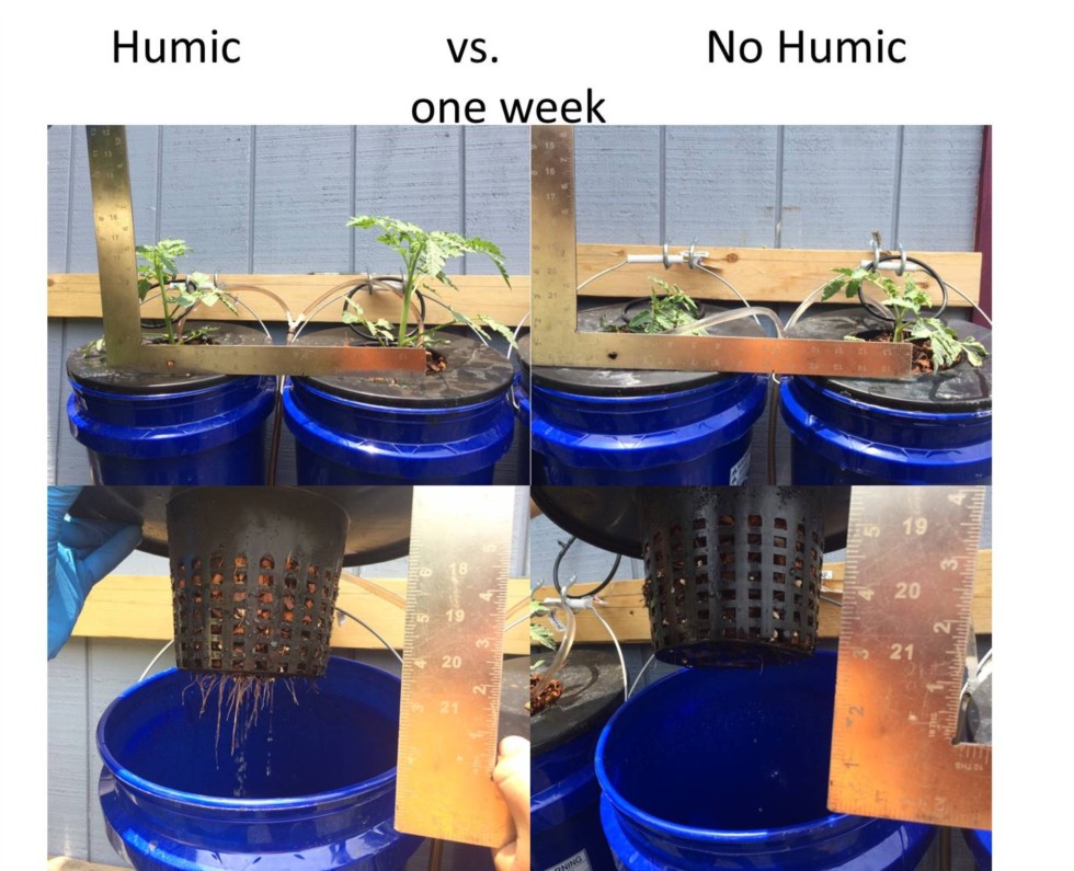 And after one week we are already seeing some pretty dramatic results with increased root mass and larger plants! As you can see in the images, the humic is being used on the left and no humic on the right. No myco is being used in these tests. We didn't want to add another variable to the mix.