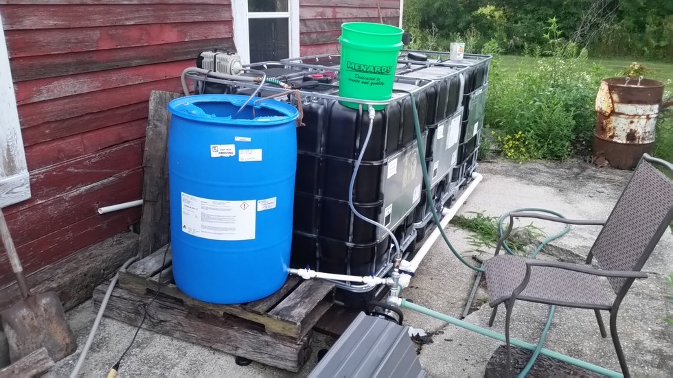 Compost tea brewer piped in, Thanks to Don young for lead on an awesome aquarium pump, starting to look like a meth lab out here