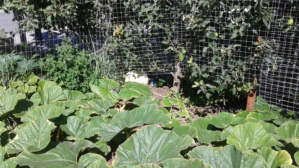 You can see by this photo that it's in a very tight spot. I am probably going to have to prune the bottom limb off of the apple tree as it grows.