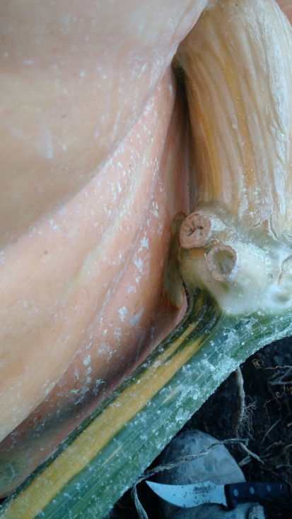Been watching this stem for a couple weeks now, finally started to make contact with the fruit so I spooned out some of the skin so it didn't put pressure on anything. Thanks Dan for the idea Glad to see it's still growing.