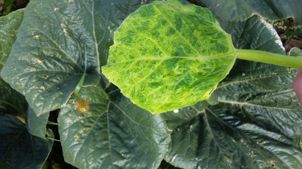 It appears all new growth on Hurley has Mosaic Virus, the plant is still very healthy and fighting it well.
