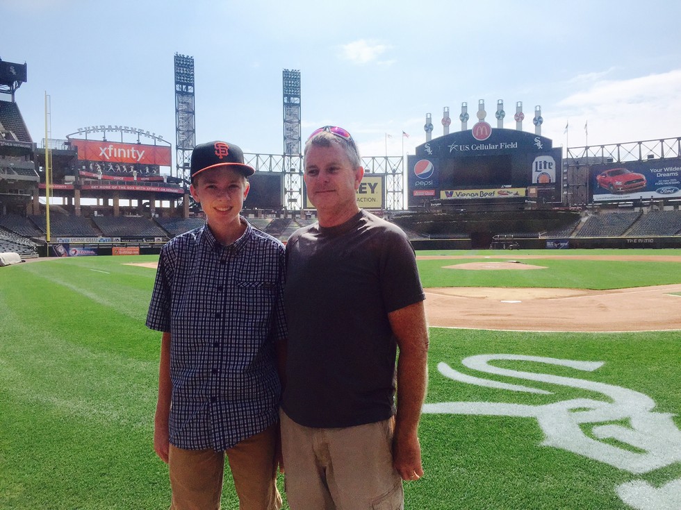 When Owen & I showed up for a tour of US Cellular Field the day after the Cub's game only to find a sign that read "No Tour Today" my curse was certainly still on. Somehow we managed to get someone from their PR to lead us around where ever we wanted to go...so there was some hope.