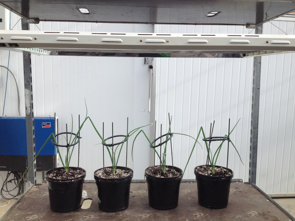The onion pad is all fired up and as of today the light is going to be on for 12 hours a day. I've been trying to select the strongest four plants for a few weeks and it's not easy. Anyway these four were planted into 3l pots today with 60% coir and 40% perlite.