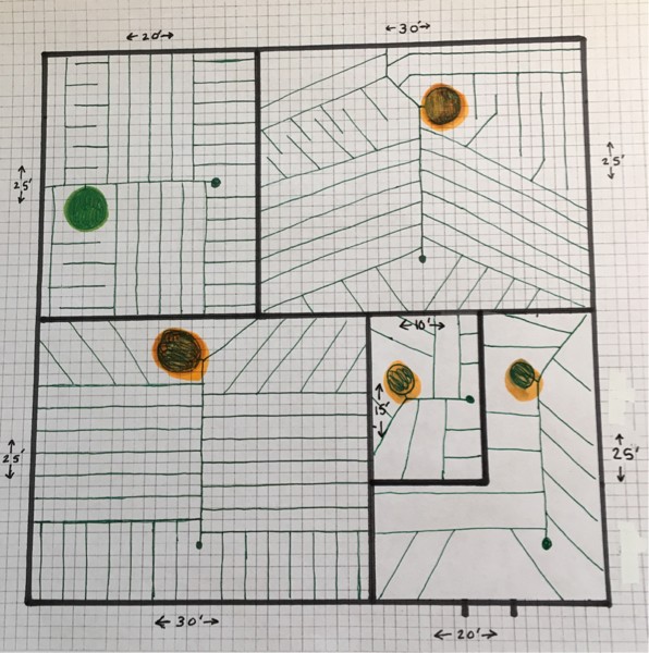 Rough sketch of Giants patch. Orange are kins and green is squash. Duh