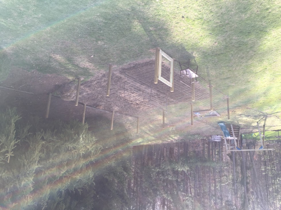Fence is up. Thanks to my wife for her help. Planted peas, onions, lettuce and some radishes. A bit to wet but already a couple weeks behind on the cool weather crops.