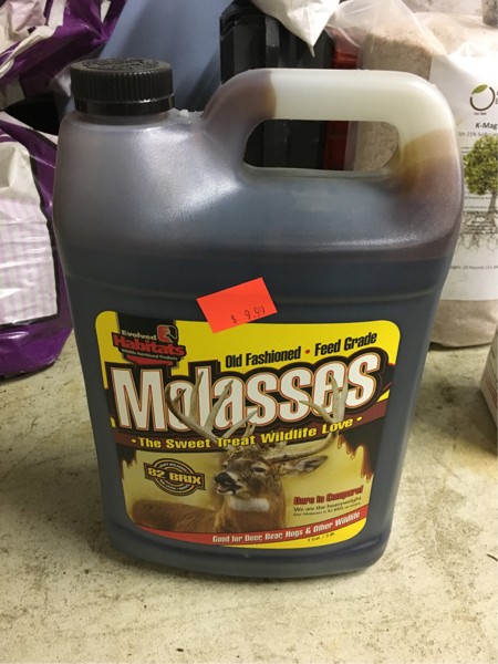 So I go to Agway and ask for molasses and they get me this. Just what I need to attract more deer to my plot. Haha