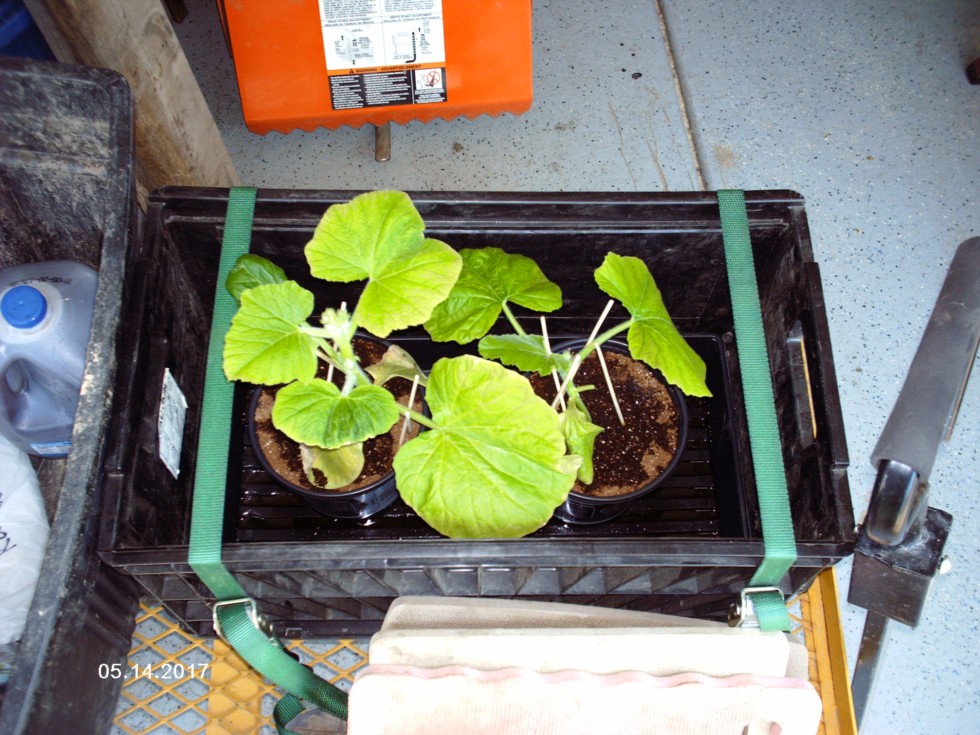 Squashes are getting to be taken to the patch for planting. Porkchop on the left and Weibel on the right.
