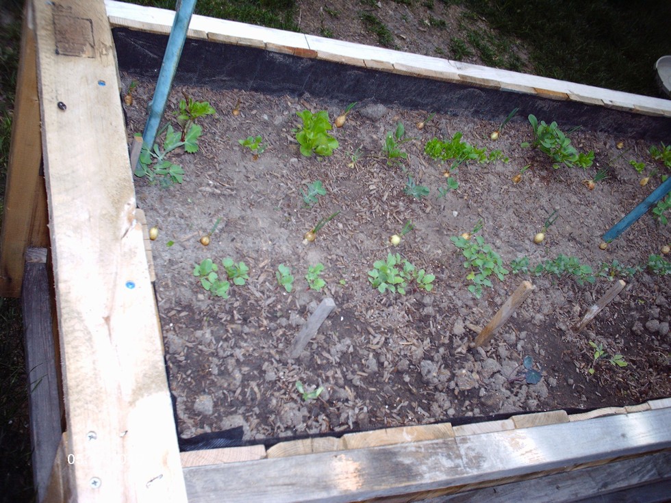 Backyard grow box..note the space saver H20 seedling in the lower left corner..hard to tell, but already has great growth! I also used Ron's Starter Packs for nearly all tranplants! Thanks Ron!