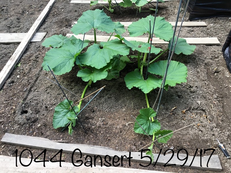Both 1044 Gansert on ground and running. These are by far our best looking plants. Wish we could keep them both but one is gonna get culled soon. Main vines around 5 feet each.