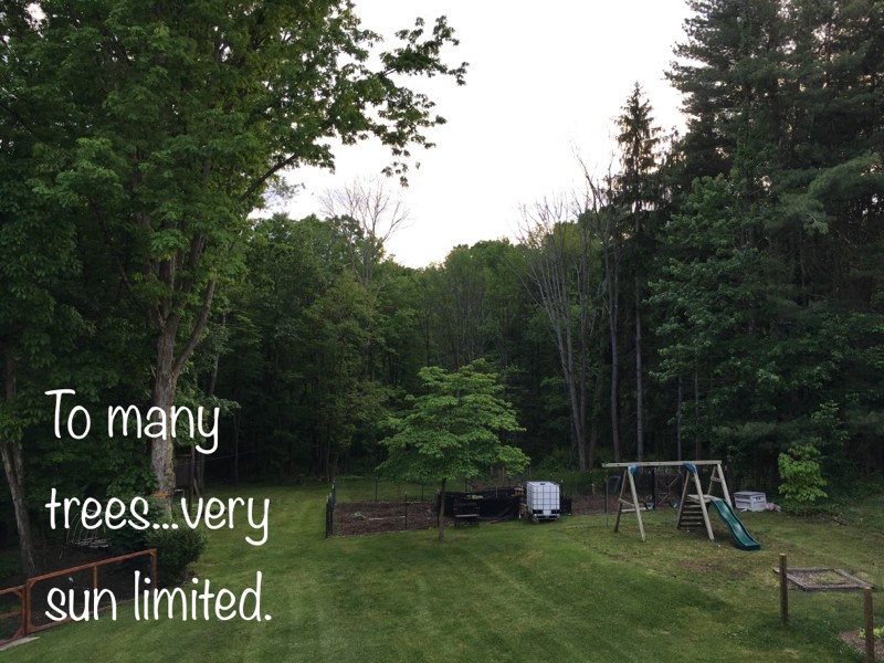 Wish I could get rid of the two giant oak trees on the left side of this picture. They are currently blocking a good 2 hours of sunshine per day. They are way to big for me to handle myself and I can't justify the expense of paying someone to cut them down for me. Plus I do actually like these trees. They are quite majestic.
