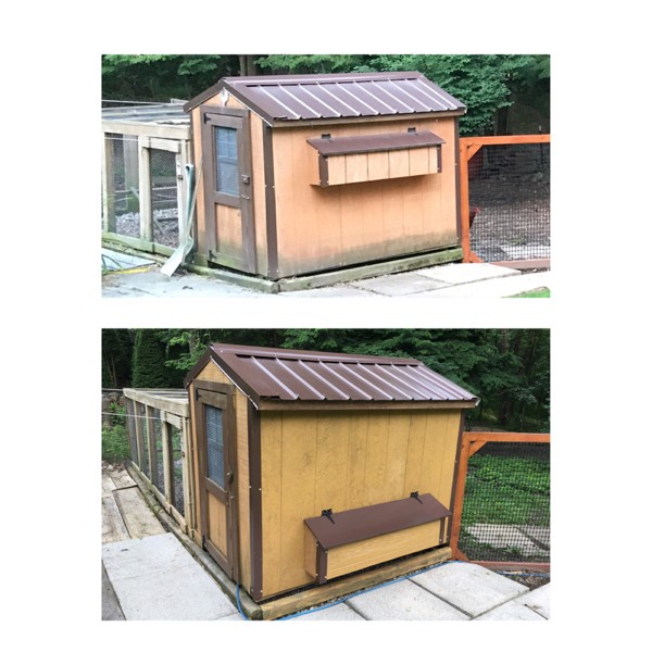 Before and after of our chicken coop rehab. Hopefully the lower nesting boxes will discourage the girls from sleeping in them.