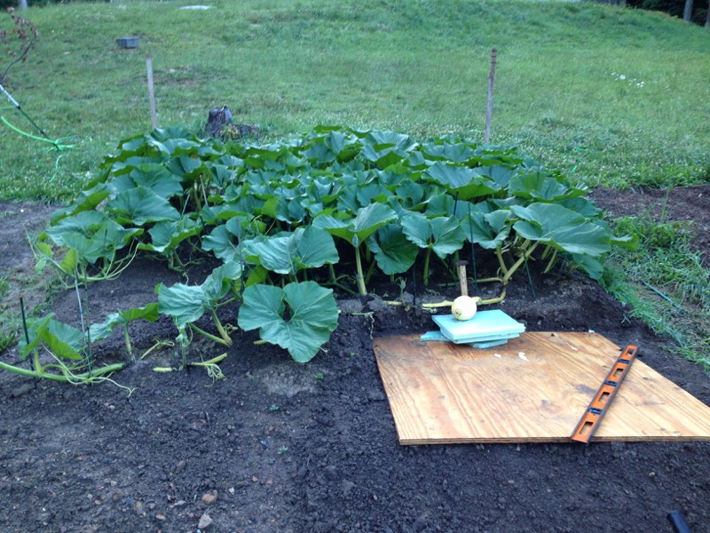 Here I have it leveled with foam boards, several layers that will be taken away one at a time as the pumpkin swells... or will they?