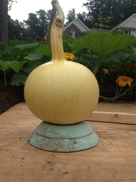 Morning coffee, tuck in for the evening. Twice a day. 4 DAC (day after cone) and she's leaning a bit. I noticed this on day one and have been re-correcting the lean ever since. It is due to a bent blossom that is touching the inside of the cone, perhaps from malformation in the baby pumpkin initially? My wife's 982 has same bent blossom, might just be how my seeds run?