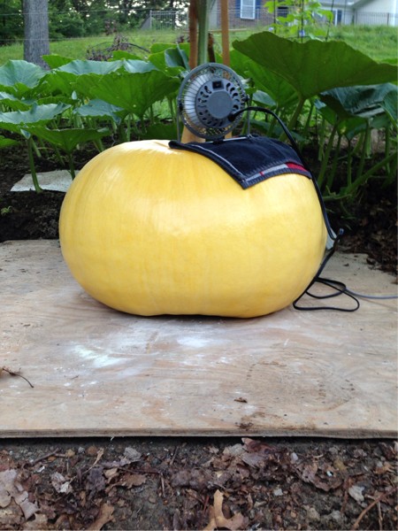 Well folks, I've finally realized something... a scratched pumpkin is way better than a rotten one. If the fan isn't drying it, move the fan closer. Looked better this morning than the last few, and rain has finally let up, so I'm hoping to still get it under control.