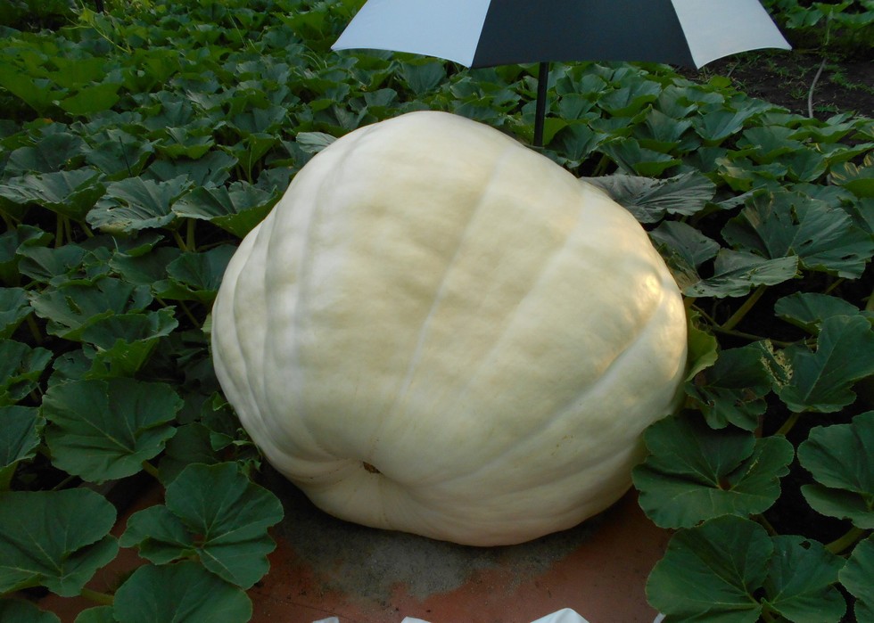 This pumpkin is a consistent producer and the pumpkin is getting taller each day. No sign of any orange color to date, so hopefully it will have a high percentage heavy. Leaves on this plant overall seem to be on the shorter and smaller side, which makes the pumpkin look larger than it is.